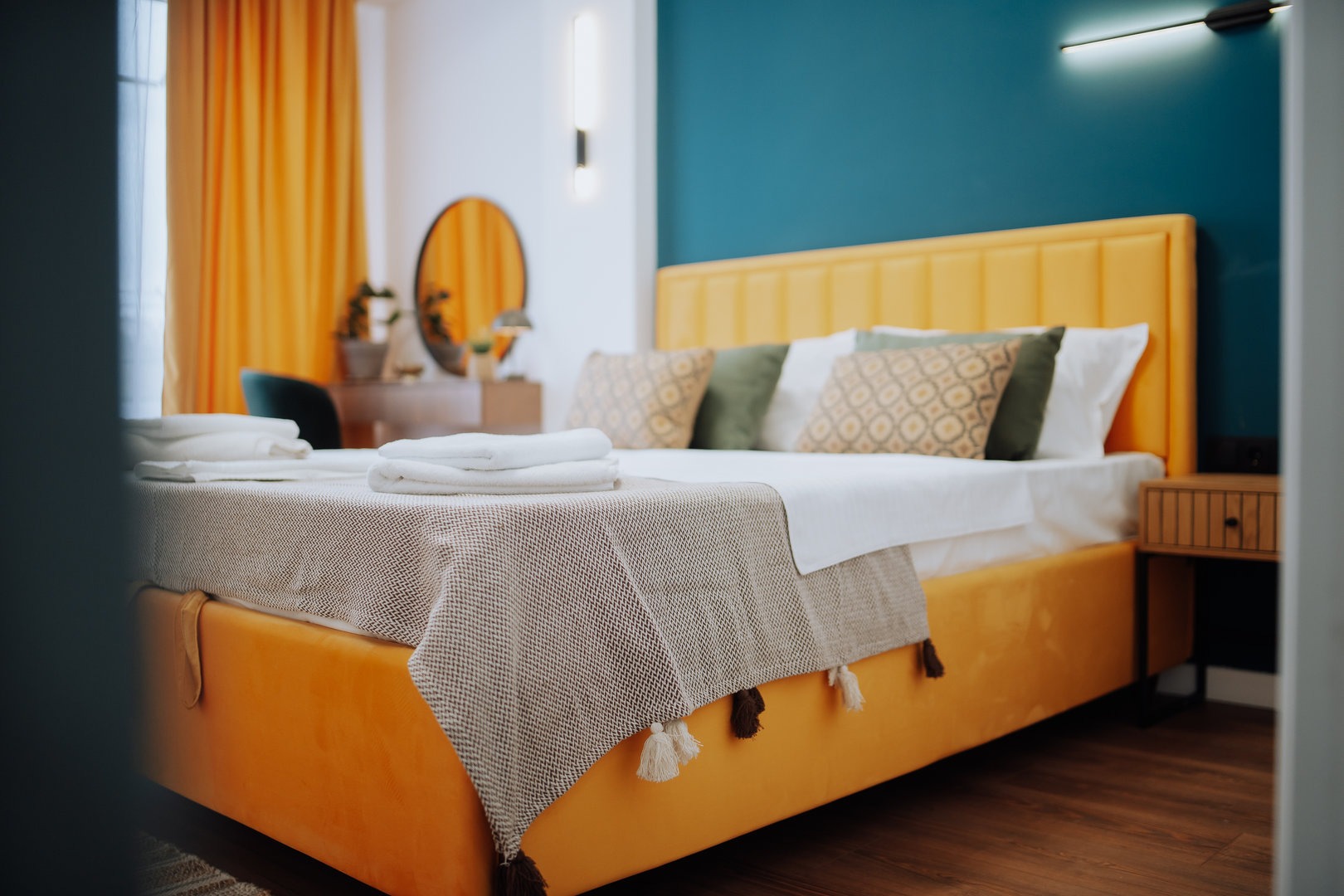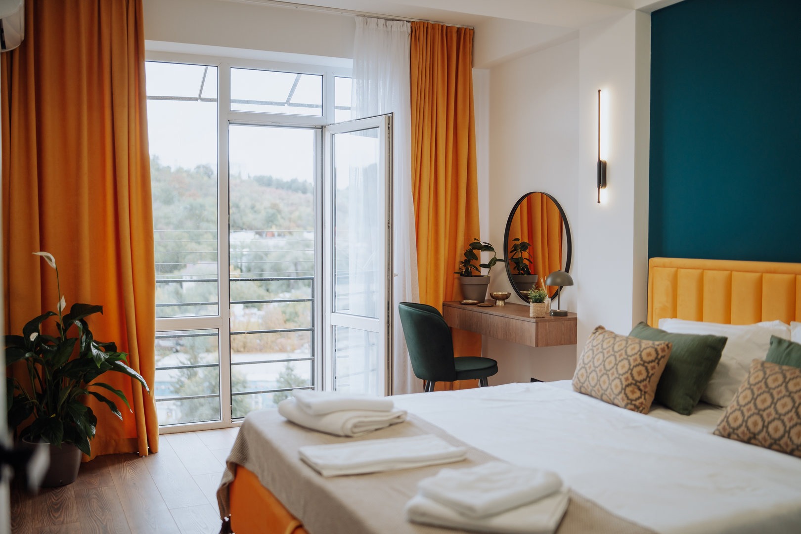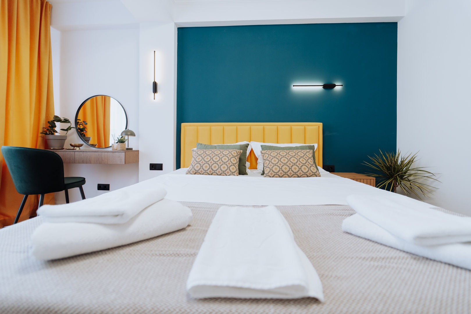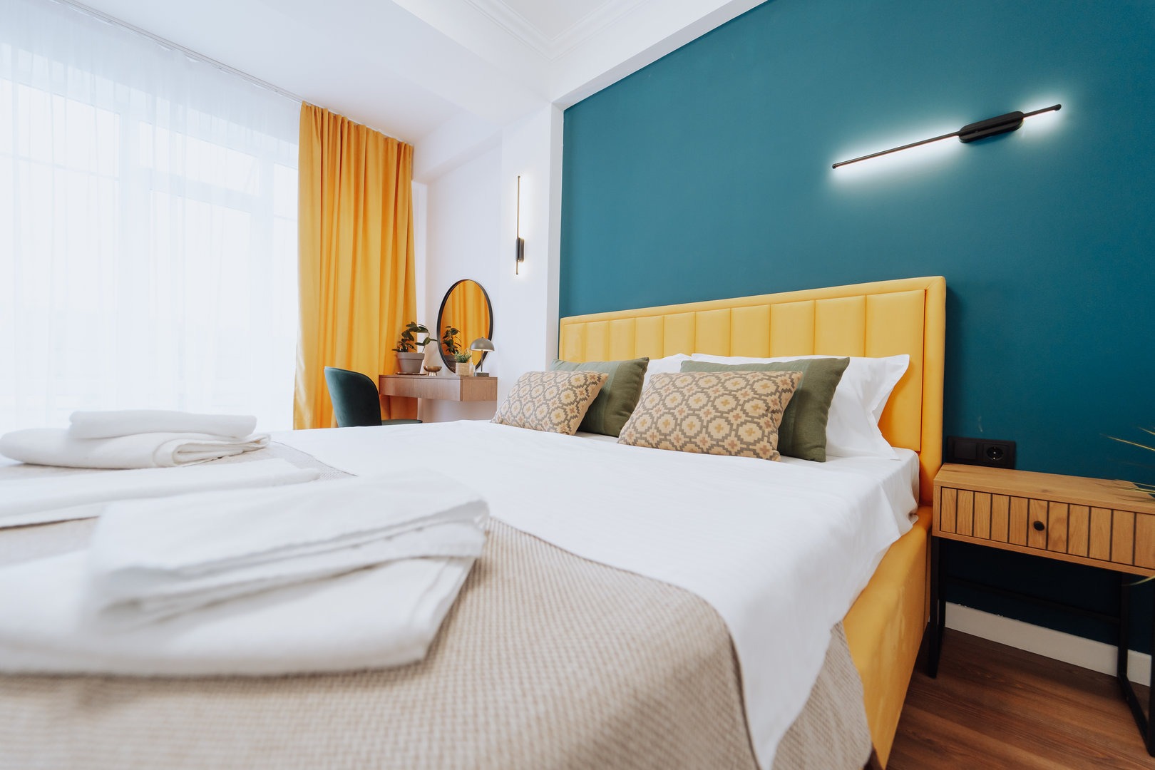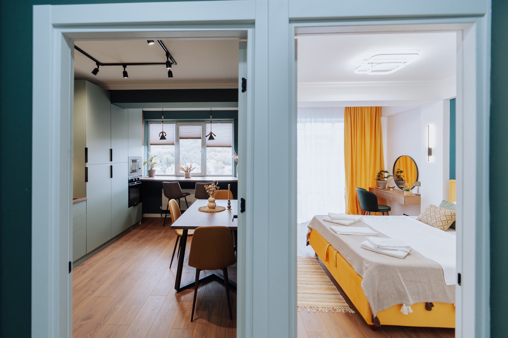 Сozy, renovated 1-bedroom apartment in quiet Râșcani, Chișinău. Located on the 11th floor in a new building, with city views, a French balcony with beautiful view, and stylish yellow, blue, and green accents. Features a workspace, air conditioning, washer, and dishwasher. Perfect for relaxation or work, close to transport and amenities. Full access to the entire space. Ideal for a comfortable and peaceful stay. We are kids and pets friendly.